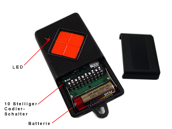 1 Stk. 1-Kanal Handsender mit 10 stelligem Codierschalter (Mäuseklavier)