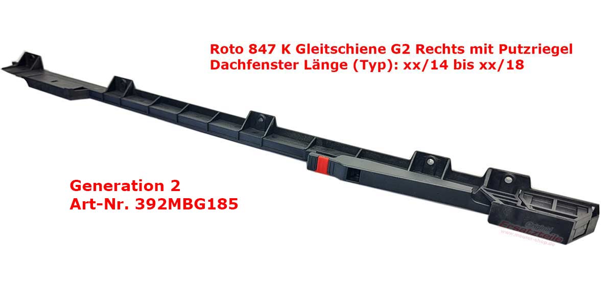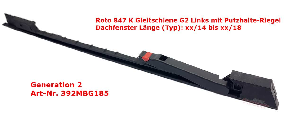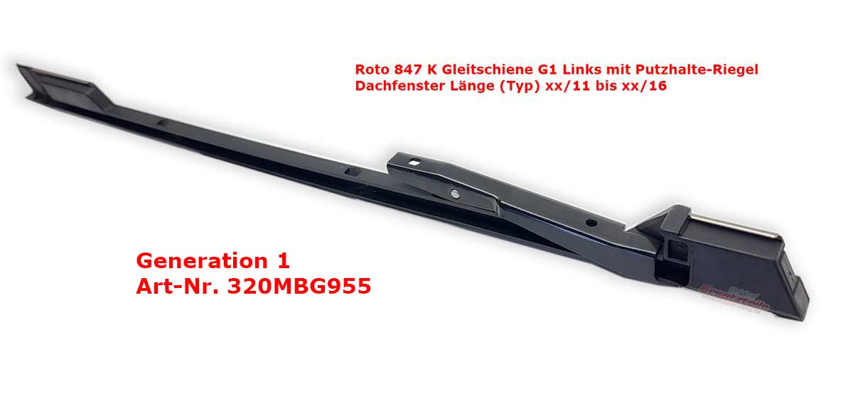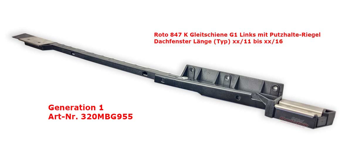 nachfolgend als Beispiel, Gleitschiene Links für Roto 84x Kunststoff Dachfenster G1 (erste Generation)