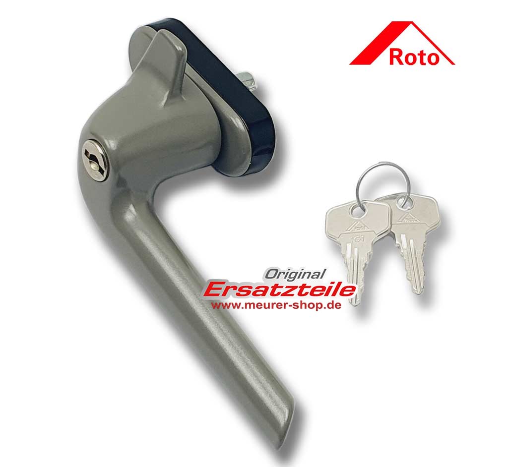 - 1 Stk. abschließbarer Fenstergriff für Roto Holz Dachfenster, Farbe Grau 9007, inkl. 2 Schlüssel