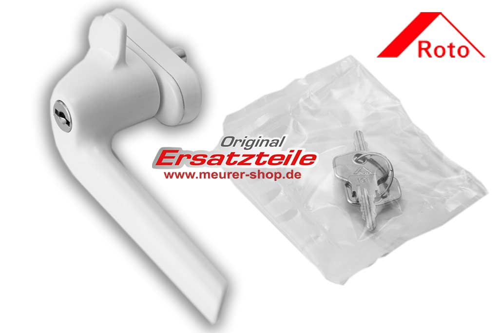 - 1 Stk. abschließbarer Fenstergriff für Roto Kunststoff Dachfenster, Farbe weiß, inkl. 2 Schlüssel