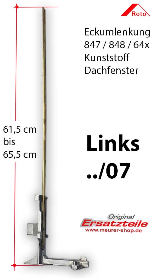 Eckumlenkung Links .../07 (78cm) für Roto Kunststoff Dachfenster Baureihe 847 / 848 und 64x