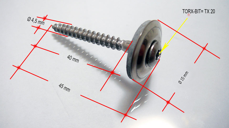 Die Neuen Edelstahlschrauben sind länger, so das auch in bereits maroden Holz wieder ein guter halt gefunden wird, zusätzlich sind die Schrauben mit einer 20 mm witterungsbeständiger Neopren-Dichtscheibe versehen.