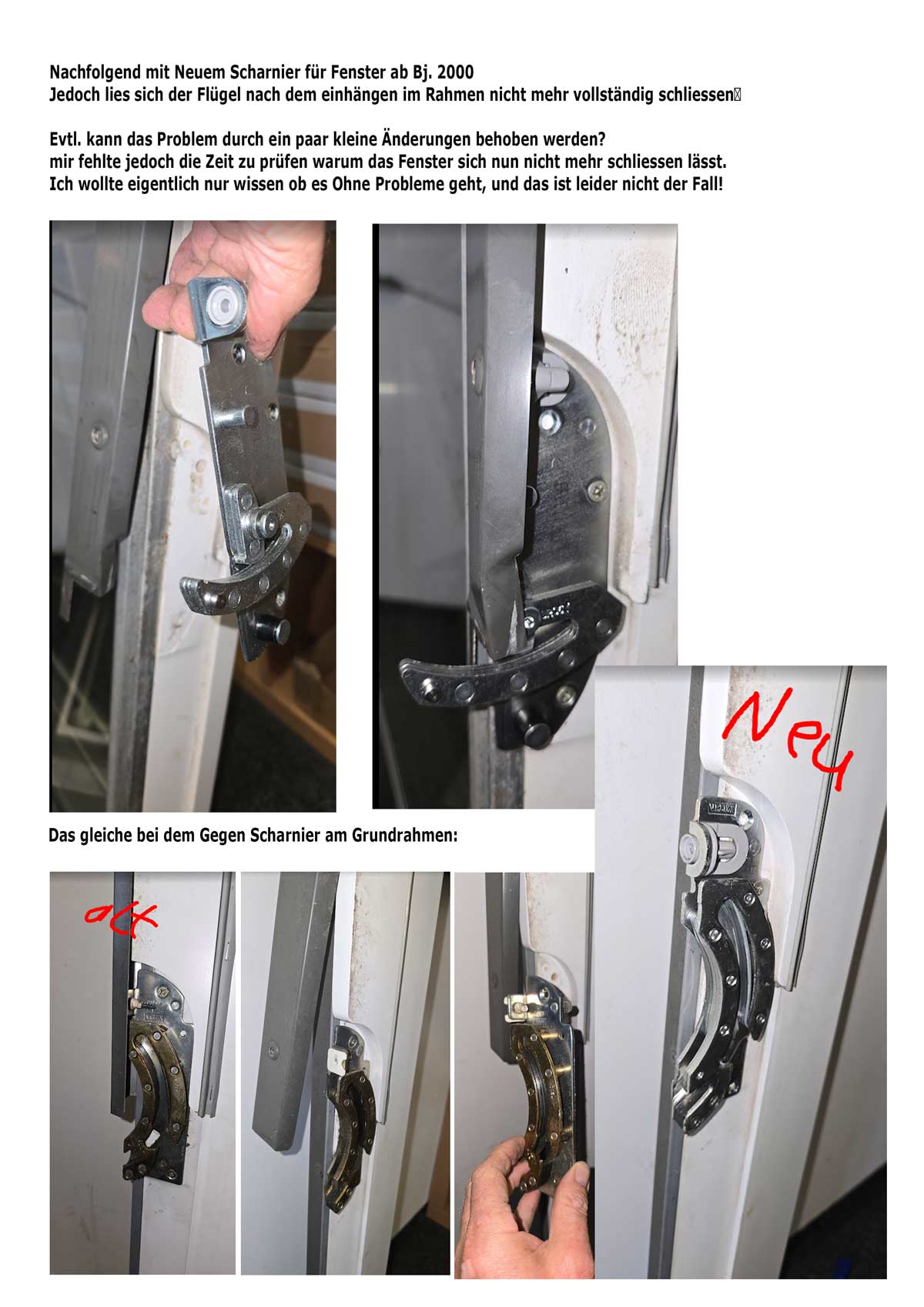 alte Scharniere vom Velux Dachfenster Bj. vor 2000 durch Neue von den nachfolgenden Dachfenster ab Bj 2000 ersetzen möglich?