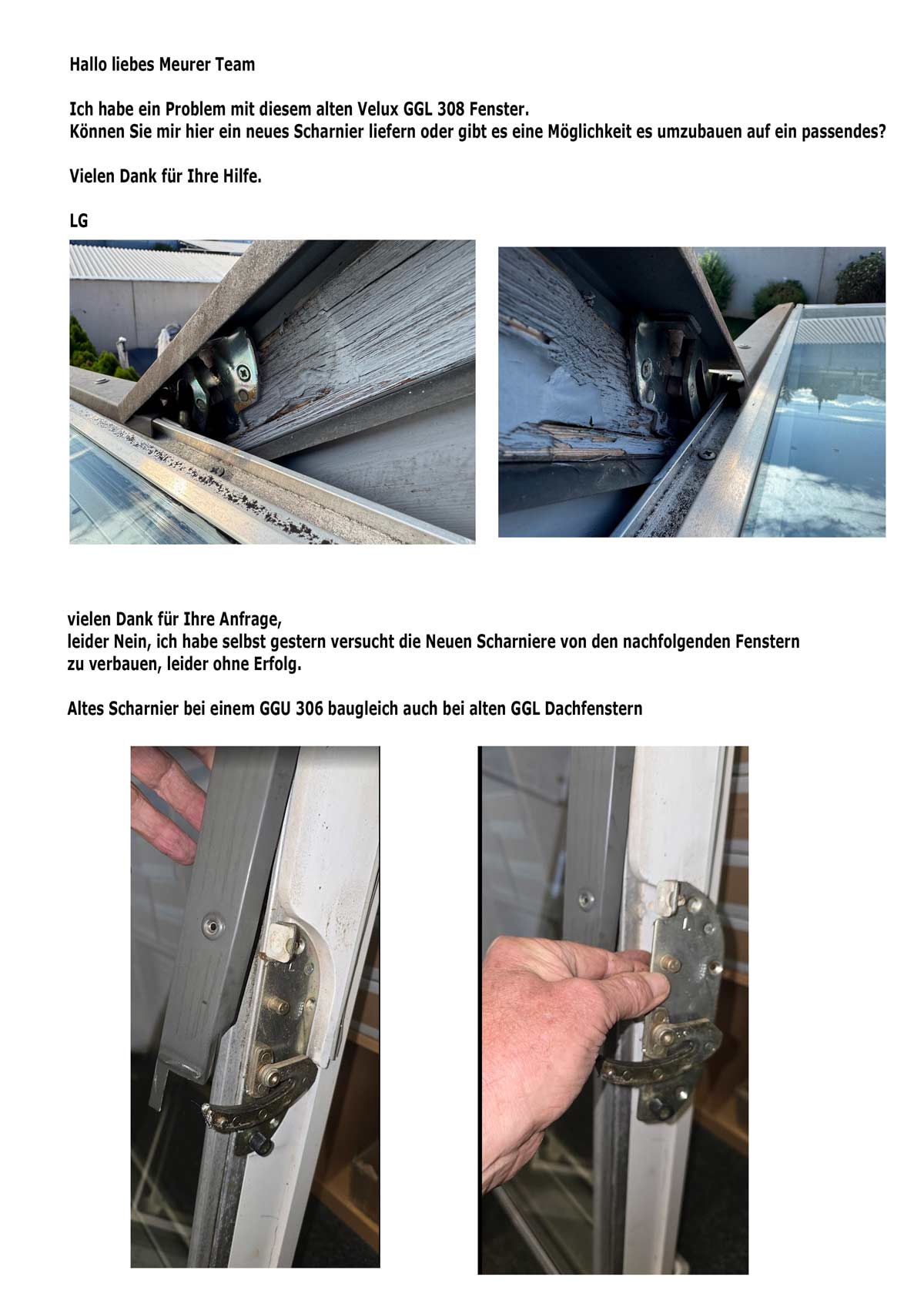 Ein Scharnier unseres Velux Fensters Bj. 2003 war ausgeschlagen und somitnkonnte das Fenster nicht mehr verschlossen werden. Auf der Suche nach dem passenden Ersatzteil wurde ich bei Meurer fündig. Der Austausch war Einfachnund somit war das Problem schnell behoben.