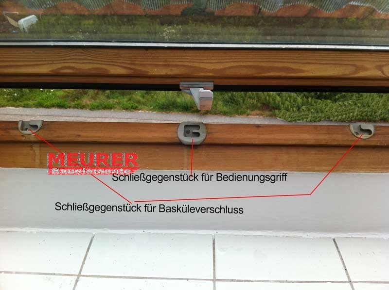 Gegenstück zum einrasten der Verschlussmechanik, seitlich, links und rechts verwendbar, für Velux Holzdachfenster vom Typ GPL bis AB05 = Baujahr bis Mai 1993