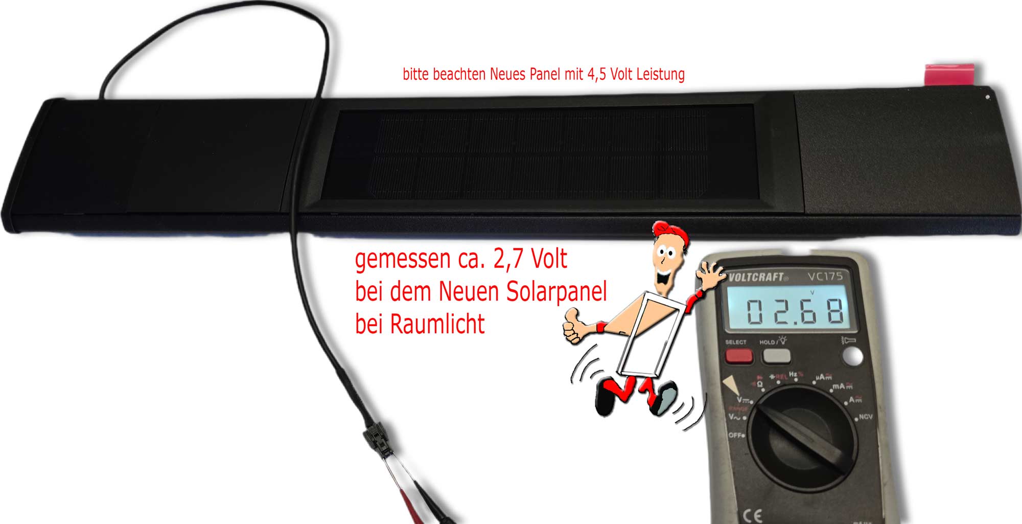 - 1 x Solarpanel 4,5 Volt, inkl. Regensensor und Adapterplatte mit 45 cm Anschlusskabel (Auslieferung erfolgt mit nur einer seitlichen Endkappe)