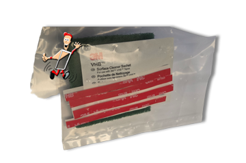 - 4 x 3M Klebepads, Reinigungstuch und Kratzschwamm
