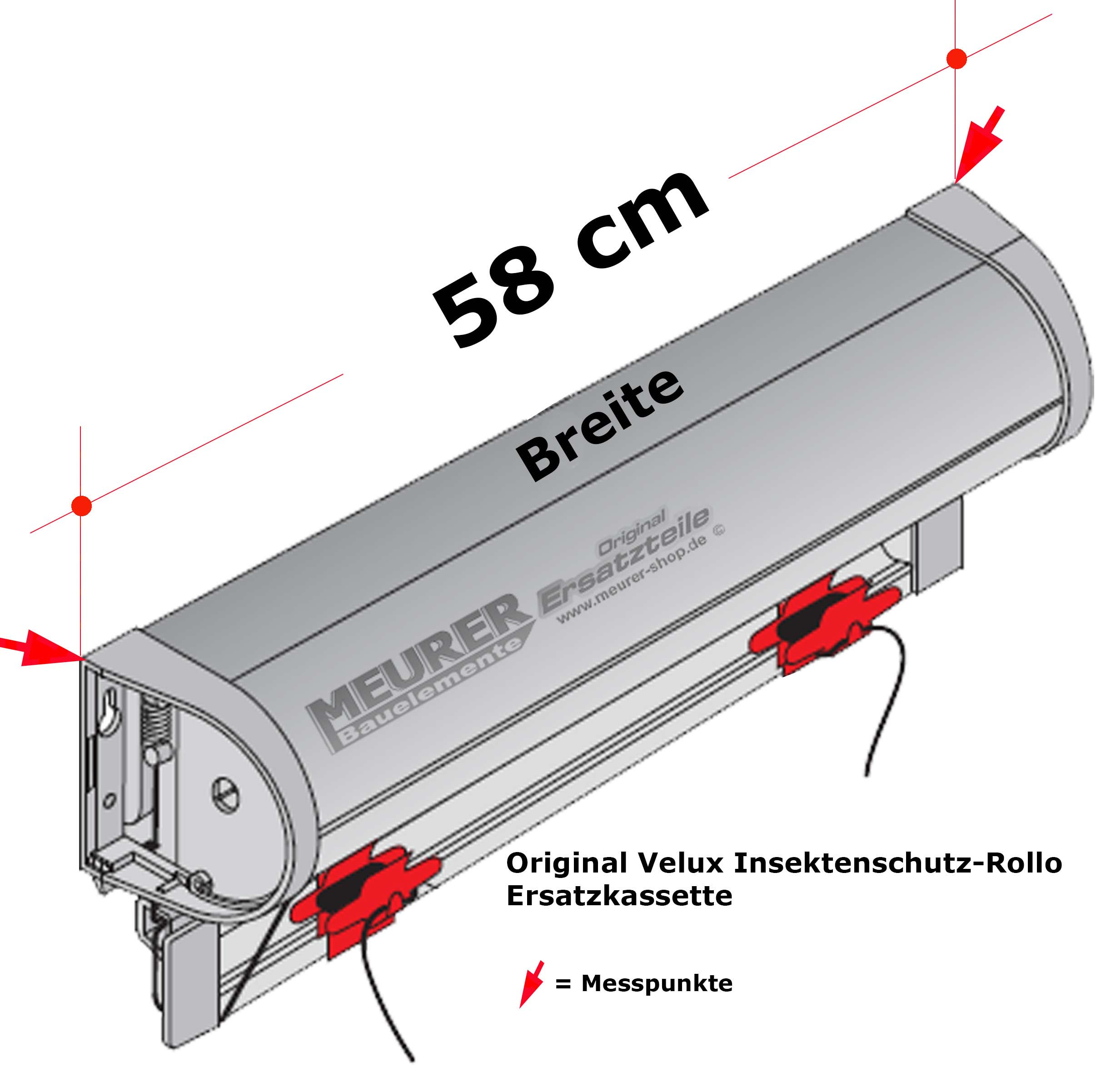 Velux Insektenschutz Rollo Kassette komplett inkl. Stoff, Gaze Fenster 1.. / C.. / CK.. Rollo Breite: 58 cm