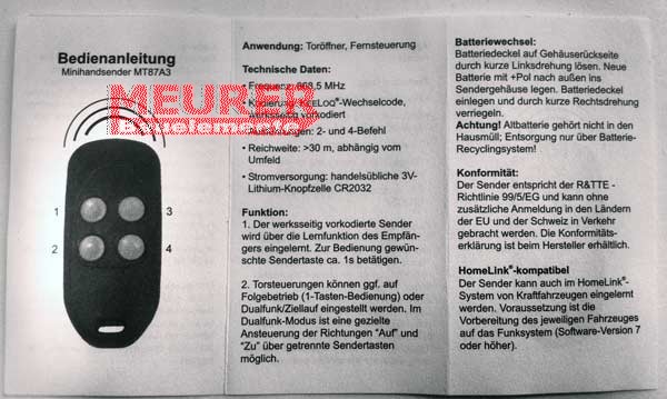 als Ersatz für diesen Handsender kann nachfolgender Handsender geliefert werden